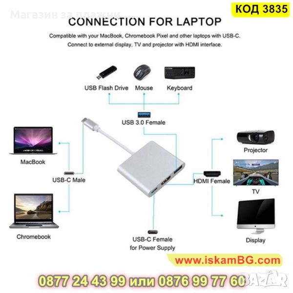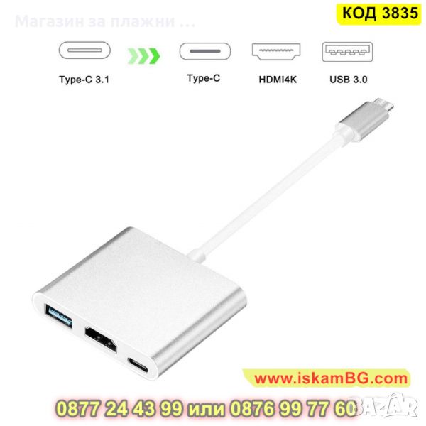 Адаптер от USB Type C към HDMI 3 в 1 - КОД 3835