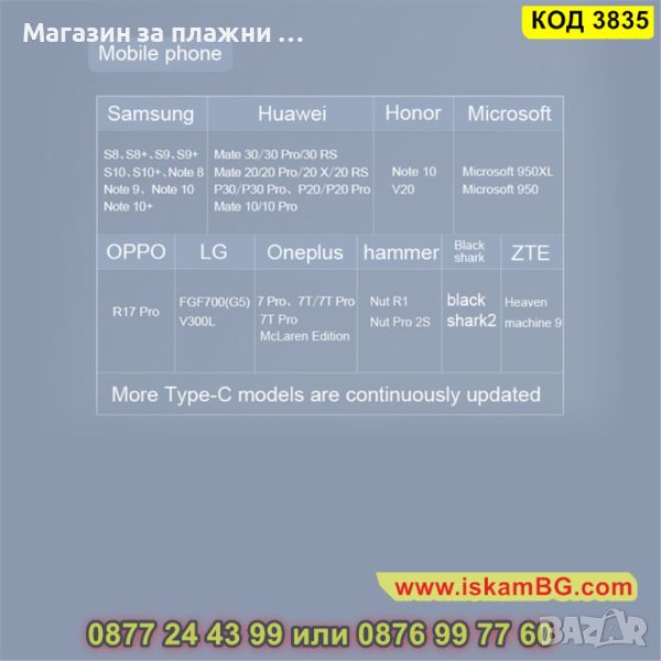Тип-C: за зареждане, 20V/3A, поддържа адаптивна мощност 5W-60W
