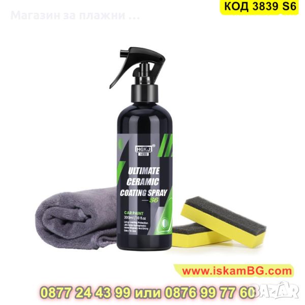 Нано керамичното покритие за кола - Ultimate Ceramic Coating Spray HGKJ AUTO S6 ще направи автомобила Ви бляскав и запазен! Този универсален спрей ! HGKJ S6HGKJ S6 се нанася лесно и гарантира трайна защита на боята от всякакви атмосферни условия – дъжд, сняг, слънце. Активната съставка, която спреят притежава в състава си - SiO2, в течна форма, HGKJ S6 запечатва повърхността на боята на автомобила, придавайки му керамичен огледален блясък! Спреят е с нано керамично покритие най – бързо и лесно ще върне блясъка на автомобила Ви, защитавайки го от надрасквания с камъни или други твърди предмети.