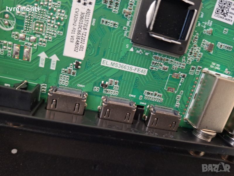Основная платка EL.MS3663S-FE48 ARIELLI LED-32T22S2 for 32 inc DISPLAY CX320DLEDM Борда е гарантирано работещ Демонтиран от телевизор ARIELLI модел LED-32T22S2 със счупен дисплей CX320DLEDM тествана от нашия техник