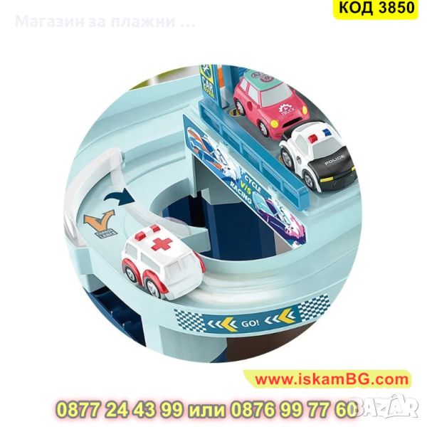 Тази игра писта за коли и пързалка с 4 броя коли е забавна детска играчка, която ще обучи детето Ви на основните принципи на физиката. Играчката запалва интереса на децата със своето качество и наситени цветове.
