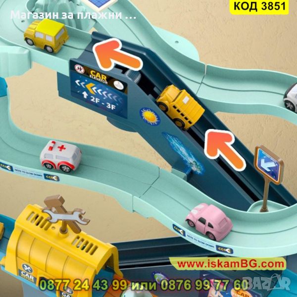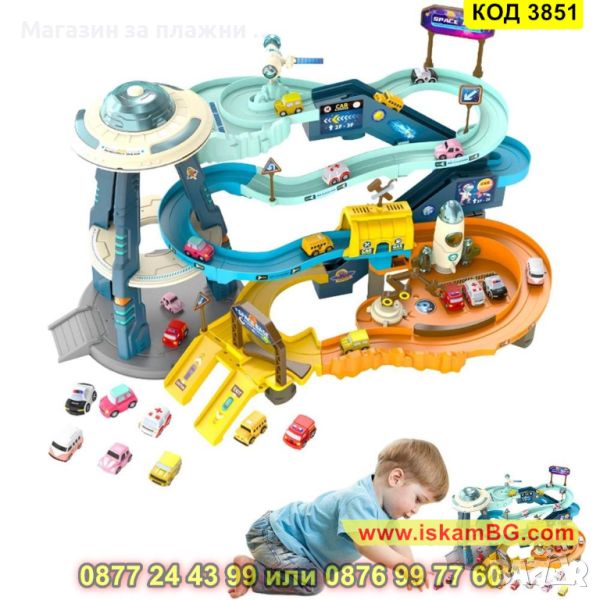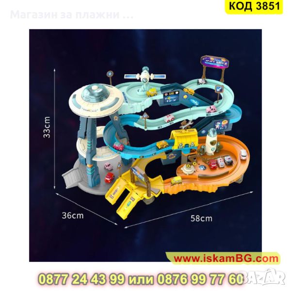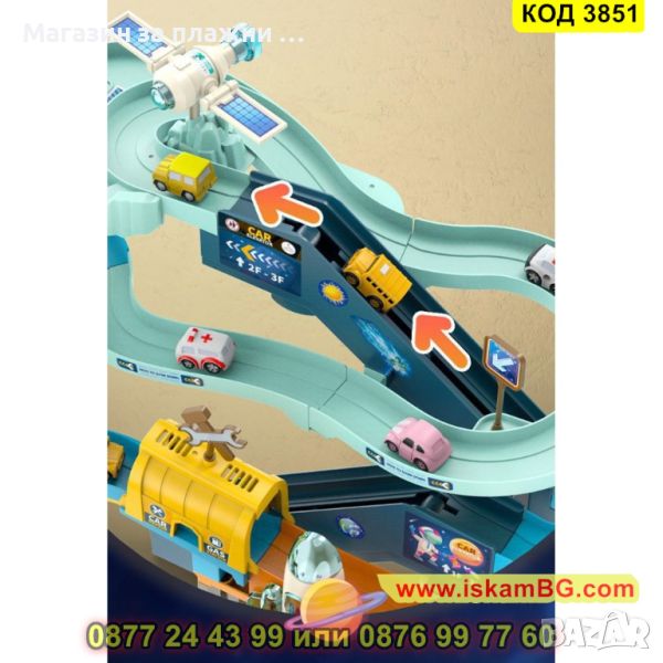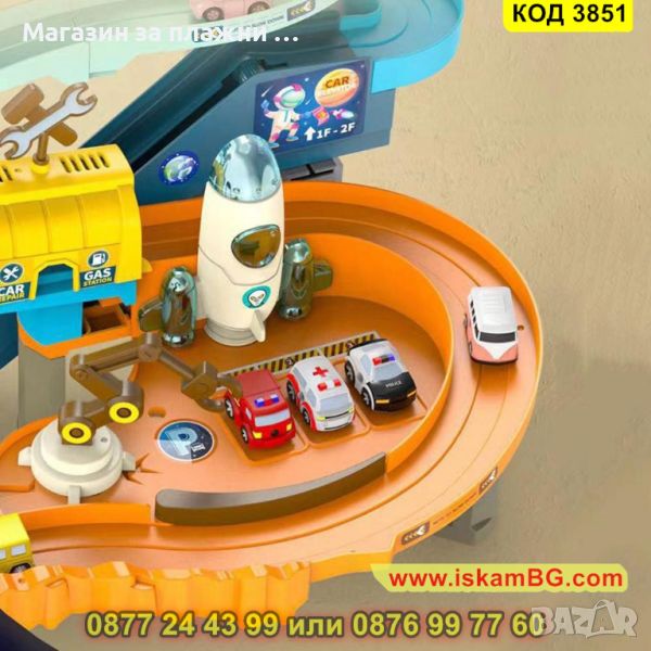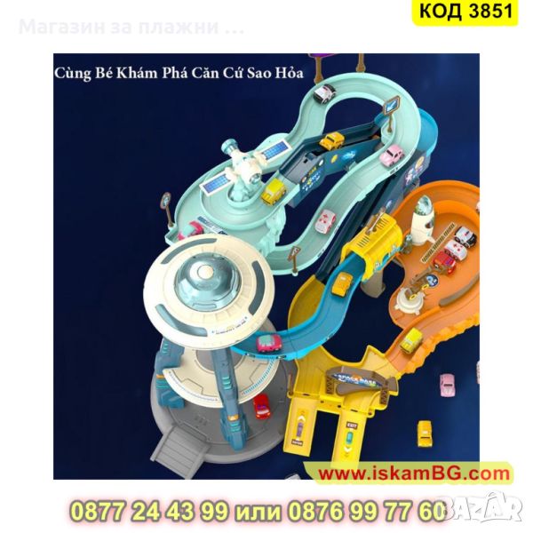 Пред детето ще се покаже цял игрален комплекс с писта на няколко нива, заобиколена от марсианския пейзаж. Кацналата летяща чиния мига в различни светлини и издава различни звуци, транспортна ракета се готви да излети, космическа станция се зарежда със слънчева енергия. Многоцветните коли се движат по пистата с автоматично движение, а детето преценява дали колата ще отиде в нов кръг или ще я изпрати до изхода, блокирайки пистата.