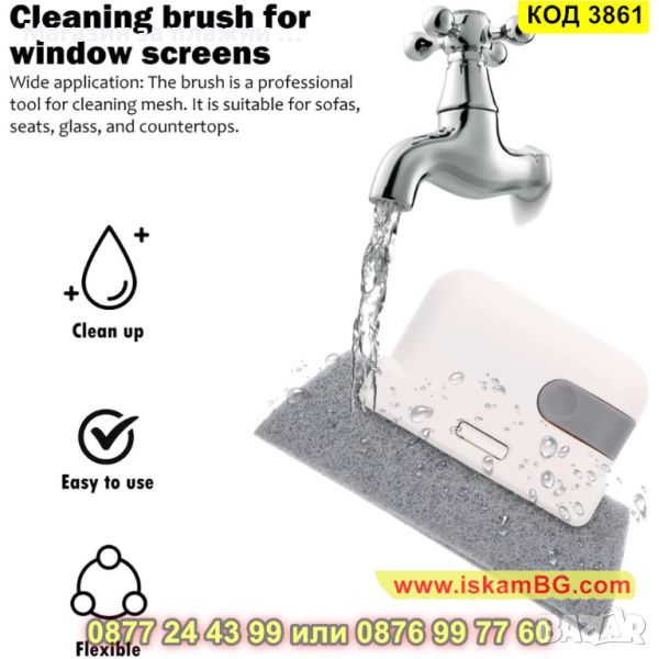 Дунапренена четка за почистване с малка шпатула за дограма - КОД 3861
