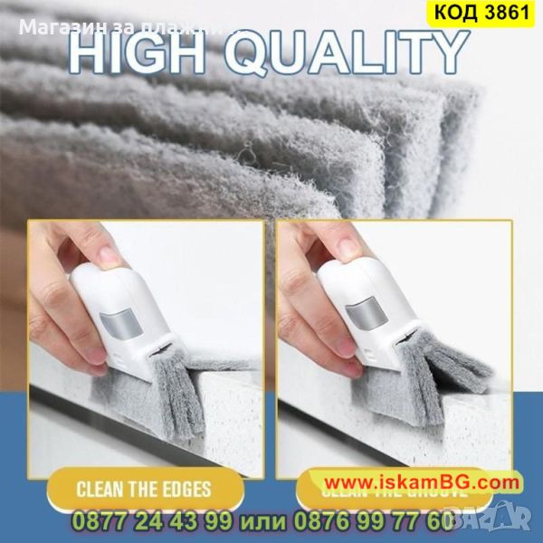 Универсална четка за почистване на канали, дограма и плъзгащи врати. С помощта на тази четка Вие ще можете да достигнете праха и мръсотията, които се наслояват по мебелите Ви. Тази четка 2 в 1 се почиства лесно и достига и най – трудните места. Като допълнение към комплекта ще получите и малка шпатула за още по –лесно премахване на наслоената мръсотия. Четката е дунапренена и върши отлична работа при почистване на прозорци с двоен стъклопакет, като лесно и бързо премахва натрупаната мръсотия в тесните канали и ръбове.