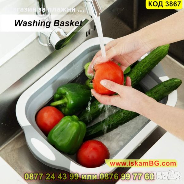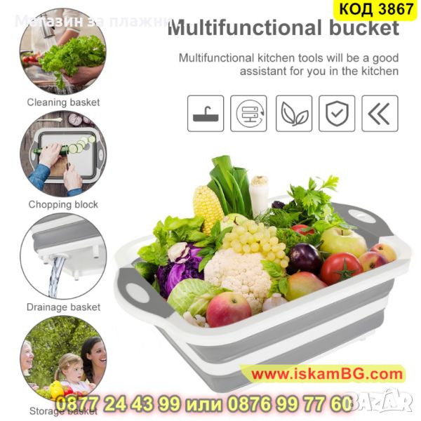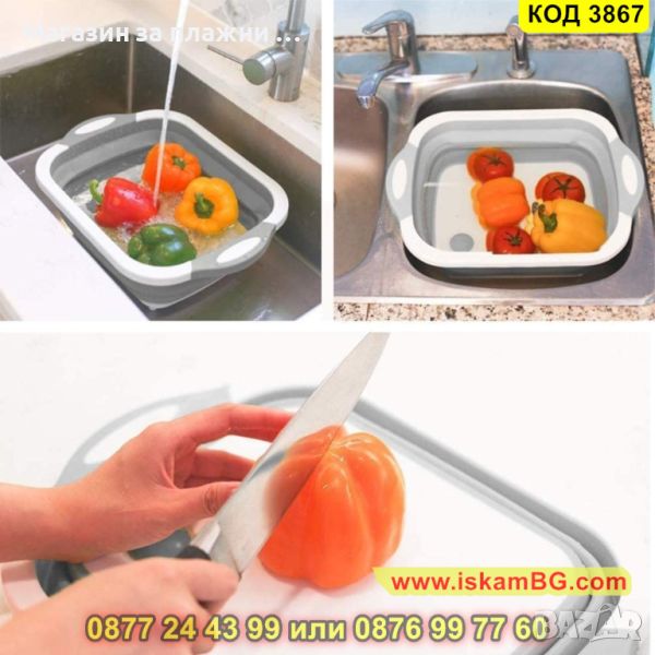 Сгъваема купа с отцедник и дъска за рязане - 1 брой