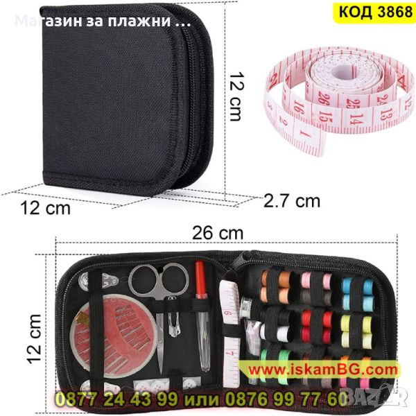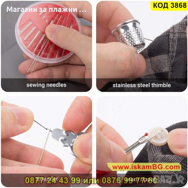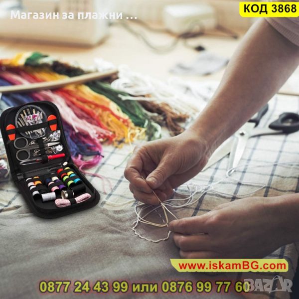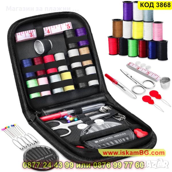 Комплектът, който Ви представяме, включва множество шивашки принадлежности и несесер, където да можете да го използвате ако Ви се наложи да шиете по време на път. В него са включени всички аксесоари при първа необходимост – игли, конец, напръстник и метър. Състои се от 2 части и е направен от текстил, а различните по вид игли ще Ви помогнат да работите с различни материали според тяхната структура и дебелина. Специално устройство, което е включено в шивашкия комплект улеснява вдяването на конеца в иглата.
