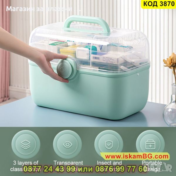 Куфар органайзер за лекарства с много отделения и специален джоб за термометър - КОД 3870