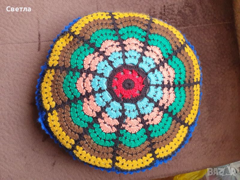 Продавам две декоративни кръгли възглавници, готови с пълнеж. Плетени на една кука.