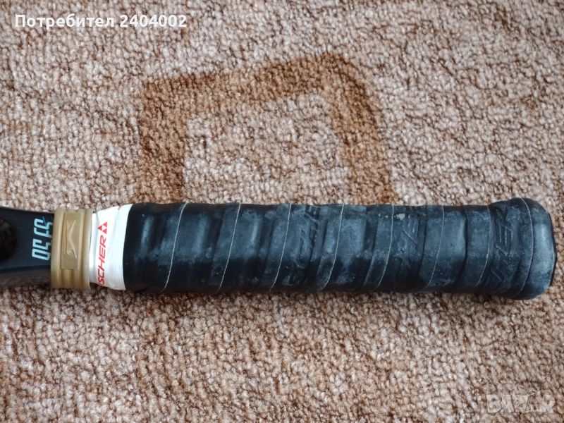 Закупена е от представител на фирмата за България-първи собственик. Наплетена е само веднъж (при закупуването). Абсолютно запазена, без забележки по кордата и ракетата. Единствено допълнителния грип е захабен. Предлага се с оригиналния калъф.