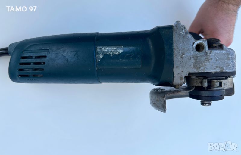 ъглошлайф на Бош от синята професионална серия, машината има козметични забележки от използването, но работи отлично и без никакви странични шумове, оригинално немско производство внос от Франция. Продава се така както си е на снимките с ръкохватката, предпазител и шайби за диск.