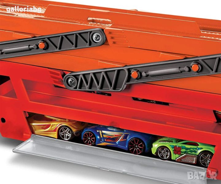 Масивен превозвач, който може да бъде натоварен с 50 автомобила Хот Уилс, разположени на 6 нива.