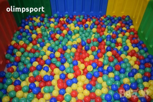 Кошара за игра с 2000 разноцветни топки. Солидна и стабилна пластмасова структура - стените на кошарата са високи 60 см и дебели 10 см. Топките са изработени от мека пластмаса и са с диаметър 7 см. Подходяща за детски градини, детски кътове и зали за игра.