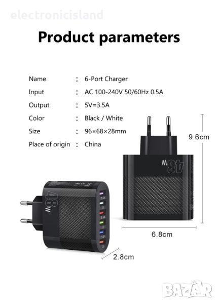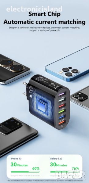 Име на продукта: зарядно за мобилен телефон 6х USB порта