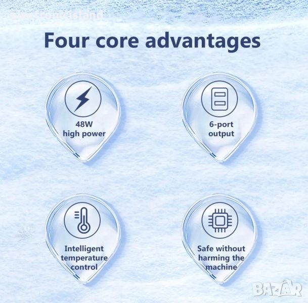 Общо: Изходна мощност: [всички 5 x USB-A + 1 USB-C] = общо 48W;