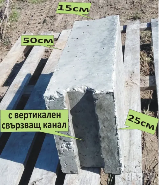 ---Плътно блокче с вертикален свързващ канал: дължина 50см, ширина 15см, височина 25см
