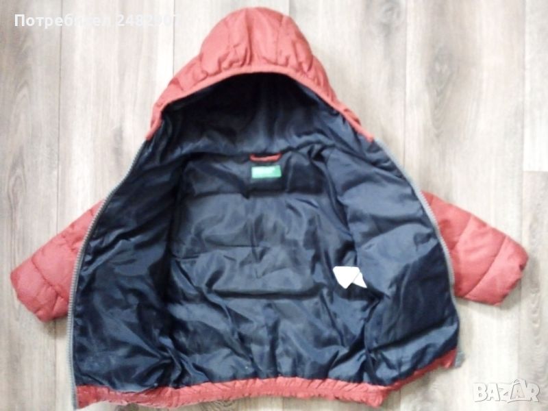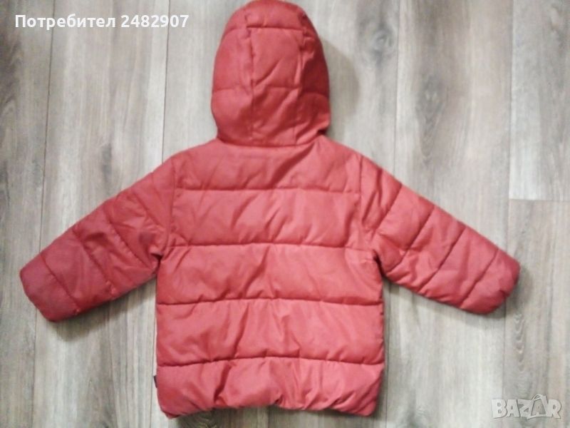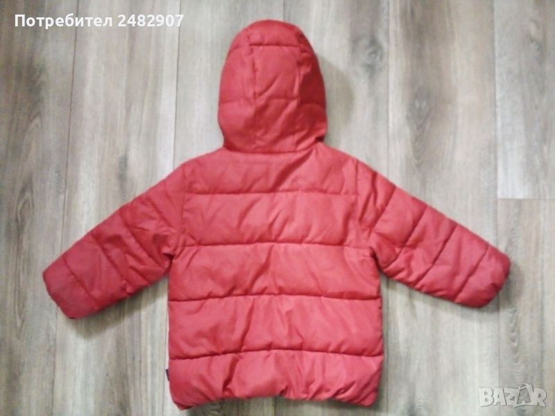 Червено детско зимно яке с качулка за ръст - 90 см. Съдържа 100 % полиестер. Ширина в раменете - 31 см, ширина под мишниците - 38 см, ширина в долната част - 34 см, дължина от рамото до долу - 44 см, дължина на ръкава от рамото - 33 см. Много запазено, почти не е използвано, отлично състояние, без забележки.
