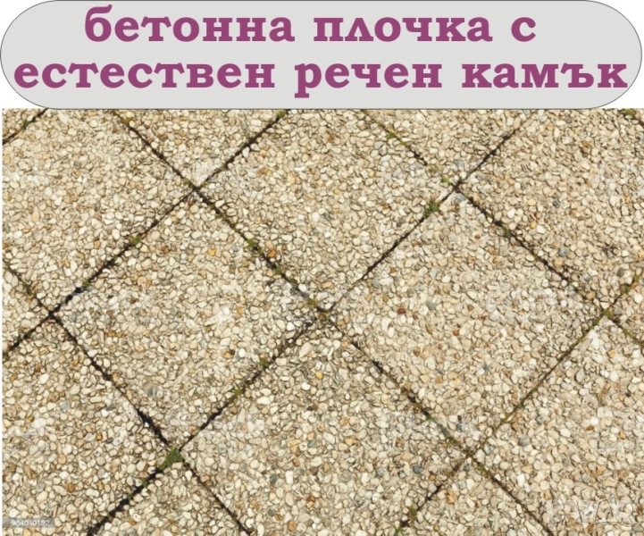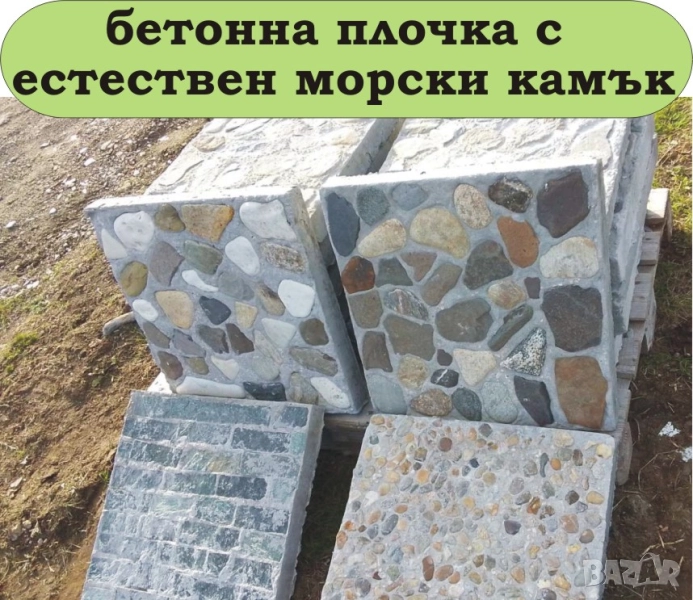 ПЛОЧКА бетонна покрита с естествен РЕЧЕН КАМЪК 35х35см: