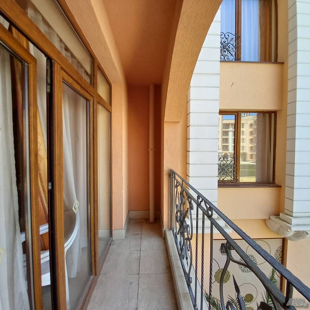 РИКОМС НЕДВИЖИМИ ИМОТИ продава АПАРТАМЕНТ в Апартхотел Палацо (Palazzo), разположен в южната част на к.к. Слънчев бряг, в близост до плажната ивица и популярния плаж и парти - зона Какао бийч. Локацията е отлична и изключително удобна - за няколко минути пеша, може да се стигне до гр. Несебър. Районът е комуникативен - супермаркет, магазини, медицински център, аптека, ресторанти, кафенета, детски площадки, летни атракции, автобусни спирки на градски и междуградски транспорт.