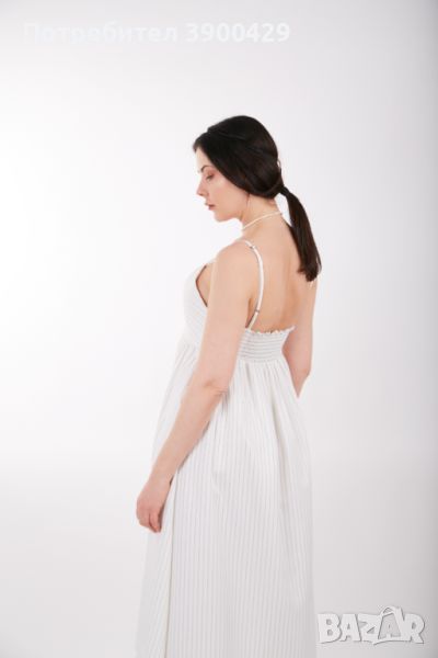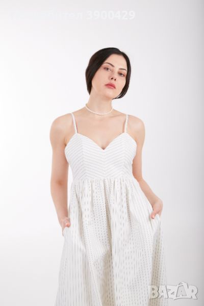 Рокля с тънки презрамки, които могат да се регулират, еластичен гръб, закопчава се с цип.