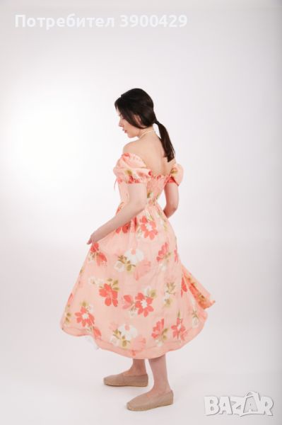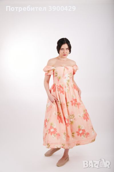 Романтична рокля, с ефектни ръкави на раменете, които могат да падат нежно на раменете.
