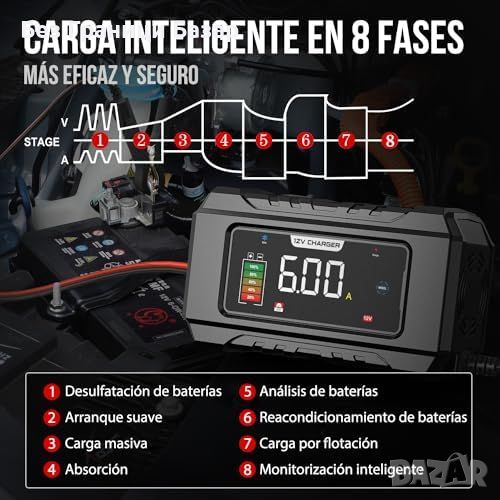 Ново NEXPEAK 12V 6A Автоматично Зарядно за Автомобилни Батерии