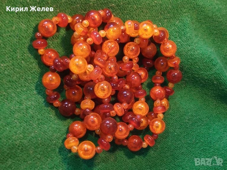 ПРЕКРАСНА ВИНТИДЖ АРТ СТИЛ ОГЪРЛИЦА ТОПЕН КЕХЛИБАР КОЛИЕ 44011