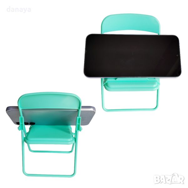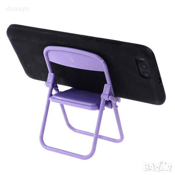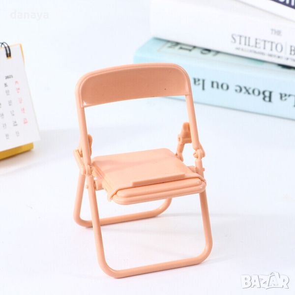 Универсална стойка за телефон или таблет с форма на столче. Пластмасова сгъваема стойка, имитираща столче, за телефон и таблет, за бюро и маса. Може да се регулира ъгъла на наклона.