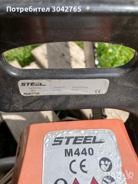 Бензинов трион марка Steel австрийска мощност 3 кс. Тежи 6.3 кг.