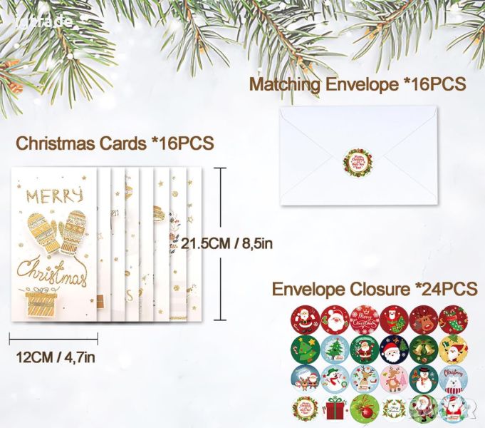 - Практични и универсални】Всяка карта може да се сгъва и предлага достатъчно място за написване на персонализирани коледни поздравления. Комплектът се допълва от 16 подходящи плика и 24 стикера.