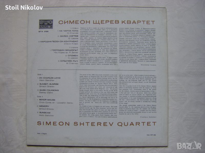 Плочата на "Симеон Щерев квартет" предлага на многобройните почитатели на джазовото изкуство възможността да навлязат по-дълбоко в същността и естетическото богатство на един звуков свят — сложен и богат, съвременен и практически неизчерпаем. Приемете го такъв, какъвто е той в края на 70-те години!