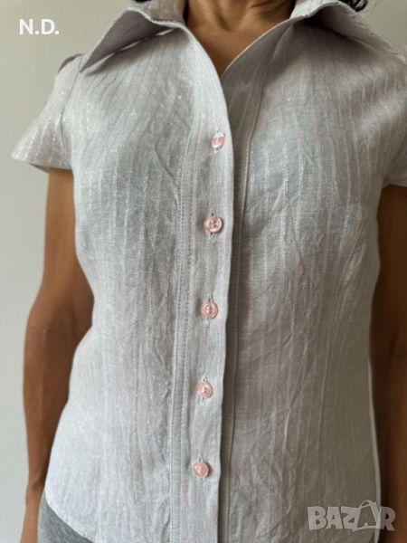 Дамска лятна блуза с къс ръкав и яка, бежева ленена-Gevanel, размер S → Обява 45163102