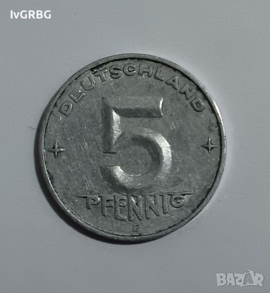 5 пфеннига 1953 ГДР Буква E Мулденхютен Източна Германия 5 пфениг 1953 Е → Обява 45164029