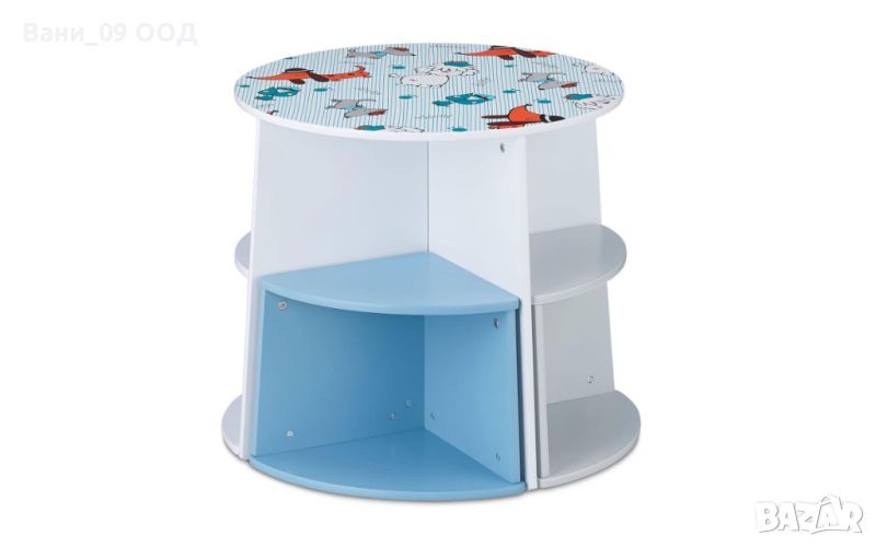 Създаден специално за деца, този висококачествен комплект маса и 4 дървени столчета има първокласно, безвредно лаково покритие, което предпазва от надраскване и улеснява почистването. Малките ще се радват да творят заедно със своите приятели различни занятия, да четат, да рисуват, да играят и да се хранят на собствената си маса и столчета. Комплектът е здрав и лек едновременно и може лесно да се мести от детската стая в хола , кухнята или спалнята - за да бъде детето по-близо до своите родители. Това е чудесен подарък за Вашето дете. Със своя модерен, изчистен дизайн в бяло и синьо на забавни кученца и идеални размери комплектът маса и столчетата се вписва във всяка детска стая - независимо дали е за момче или момиче. Компактно проектиран за лесно и удобно прибиране на столчетата.