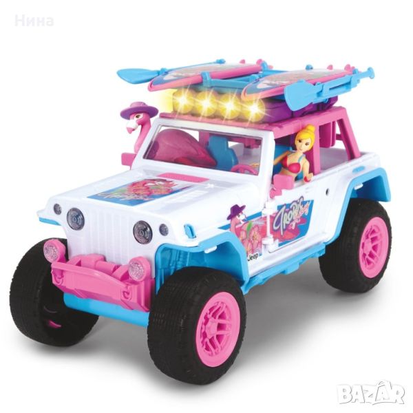 Автомобил Dickie Jeep Flamingo + Фигура, 22 см, Светлинни и звукови ефекти, Мащаб 1:24