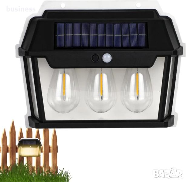 Соларна Стенна лампа с 3 LED крушки 38w, снимка 1 - Соларни лампи - 45169709  Соларна Стенна лампа с 3 LED крушки 38w, снимка 2 - Соларни лампи - 45169709  Соларна Стенна лампа с 3 LED крушки 38w, снимка 3 - Соларни лампи - 45169709 1/3