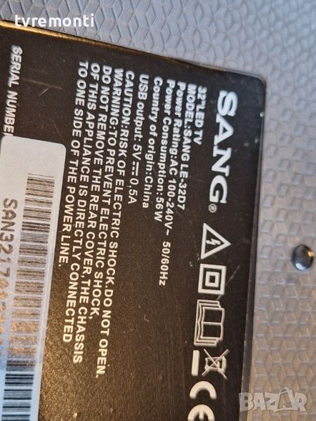 MAIN BOARD TP.S506.PB819 SANG LE-32D7 for 32 inc DISPLAY CX315DLEDM Борда е гарантирано работещ Демонтиран от телевизор SANG модел LE-32D7 със счупен дисплей CX315DLEDM тествана от нашия техник
