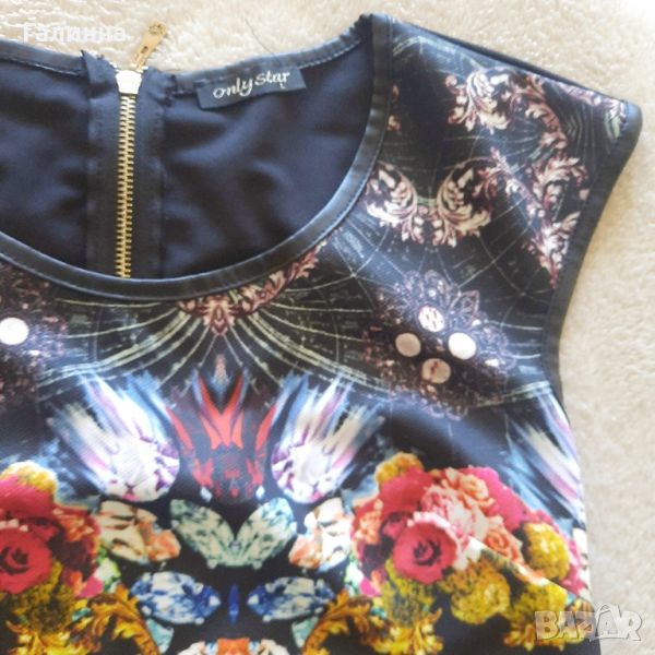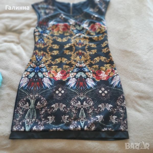 Интересна цветна рокля. Стой много елегантно. Размер Л по етикет, но става и за М, защото е с марка еластичност.