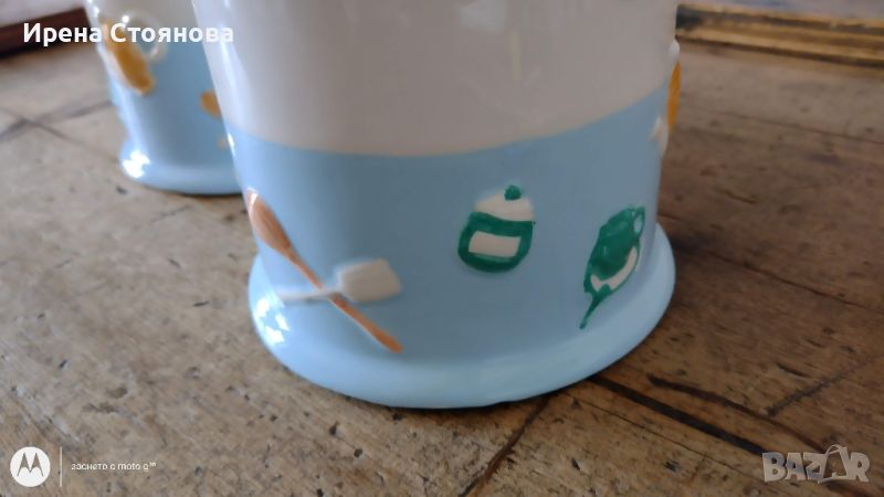 2 буркана за подправки брашно и сол. Вместимост 850 мл, височина с капак 17 см, без 12,5 см, диаметър 11,5 см. Без маркировка. Единствено забележка на основата на брашно малък чип, в изправено положение стои, като лека неравност. Цена за 1 брой 20 лв. Двата 35 лв.