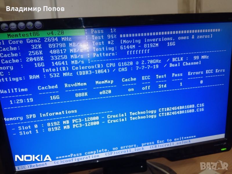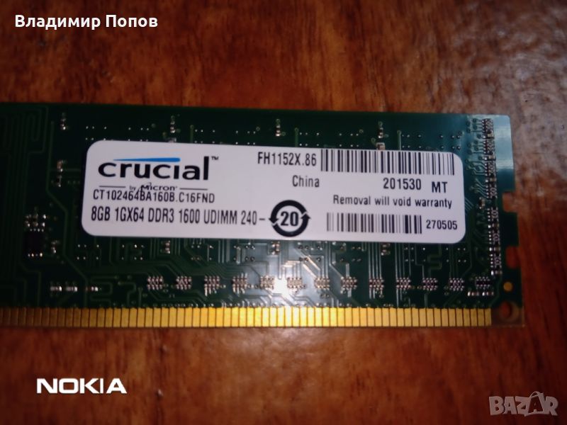 Продавам RAM памет Crucial DDR3 8GB 1600MHz → Обява 45172067