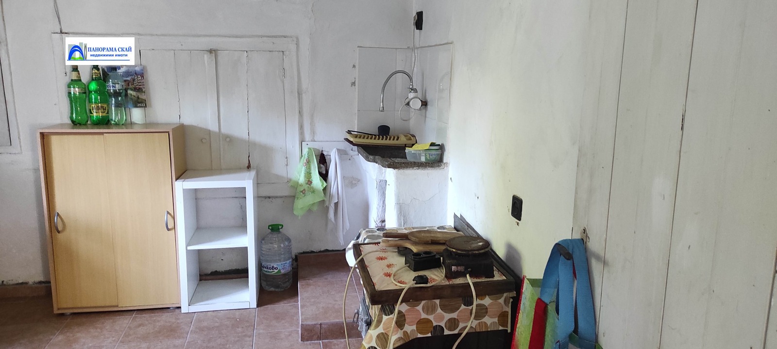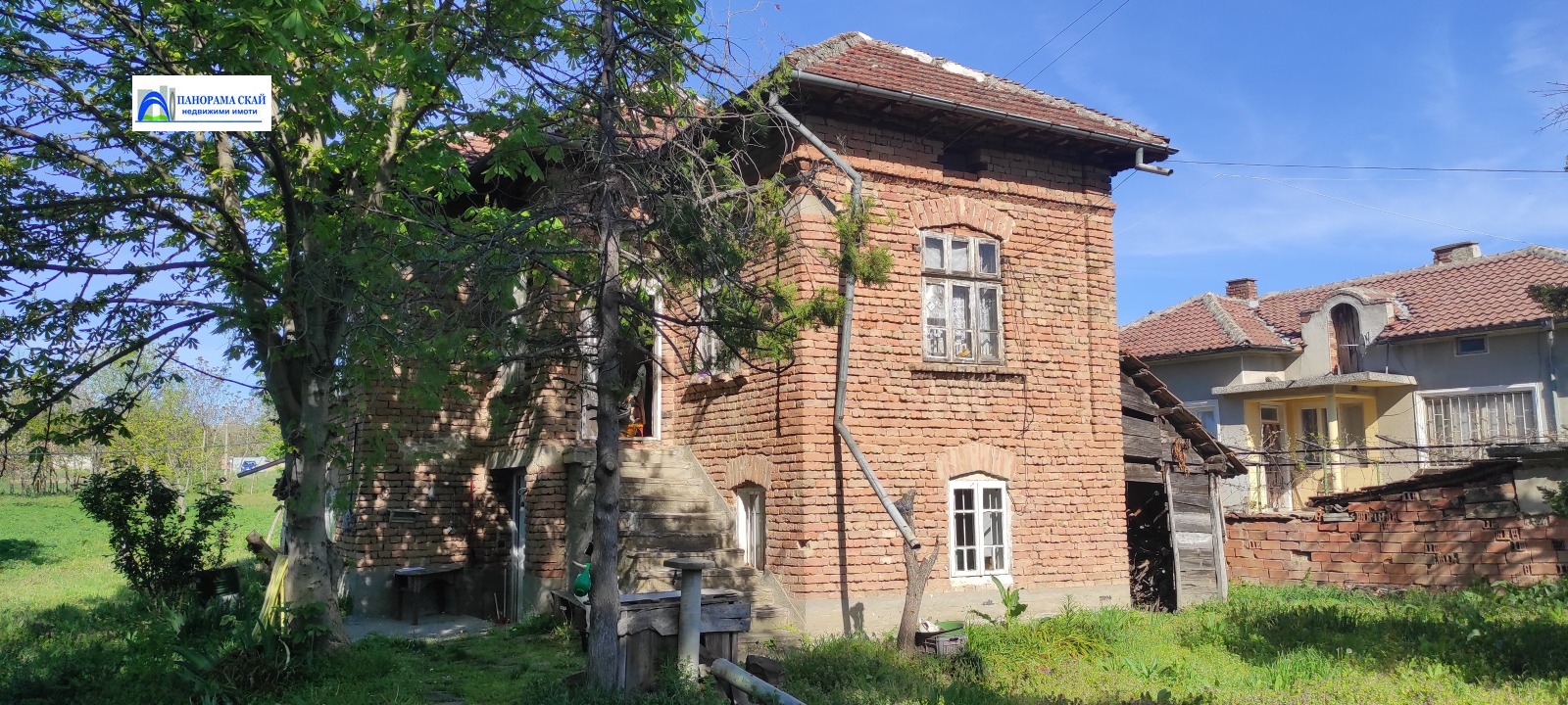 Продава се самостоятелна къща с двор от 1420 кв.м. Къщата е на два етажа по 50 кв.м. На първия етаж има стая, кухня, маза, баня с тоалетна и коридор. На втория етаж са три стаи и голям коридор, в който може да се направи баня. Този етаж не е ремонтиран. Покривът на къщата е здрав. Дворът е голям и равен, има плодни дръвчета, голяма липа и орех. Имотът се намира на асфалтирана улица в близост до центъра на населеното място.