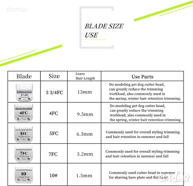 Керамично ножче, изработено от издръжлива неръждаема стомана 440C и включващо керамично острие с титаниево покритие, което гарантира острота, твърдост и устойчивост на ръжда дори във вода. С повишена температурна устойчивост в сравнение с традиционната въглеродна стомана, то предлага по-тиха работа. Използвайки авангардни процеси на прахова металургия и синтероване на керамика, тези остриета разполагат с технология от професионален клас. Съвместим със серия UltraEdge/CeramicEdge на Andis, ножици с подвижни ножове на Andis (AG, AGC, AGP, AGRC, AGCL, AGR Plus, AGRV, DBLC, MBG, SMC), серия Oster A5 и Wahl KM, осигуряващи гъвкавост в различните модели.