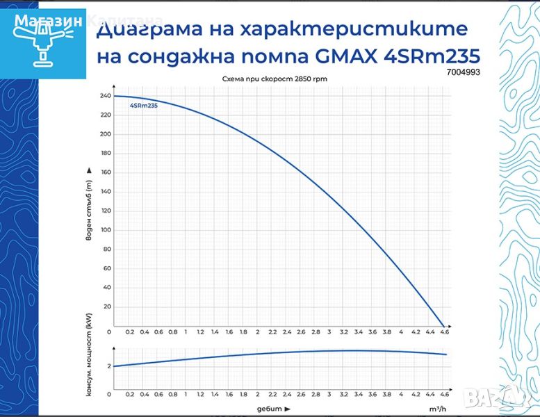 Сондажна водна помпа Gmax макс. дълбочина на потапяне 80м., воден стълб 237м.