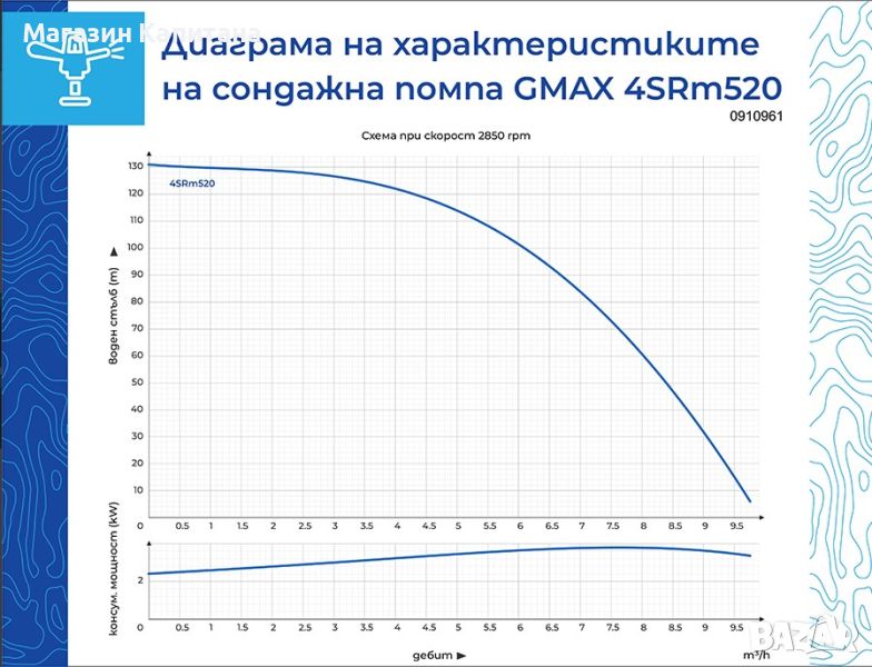 Сондажна водна помпа Gmax 9м3/час макс. дълб. на потапяне 90м., воден стълб 128м.