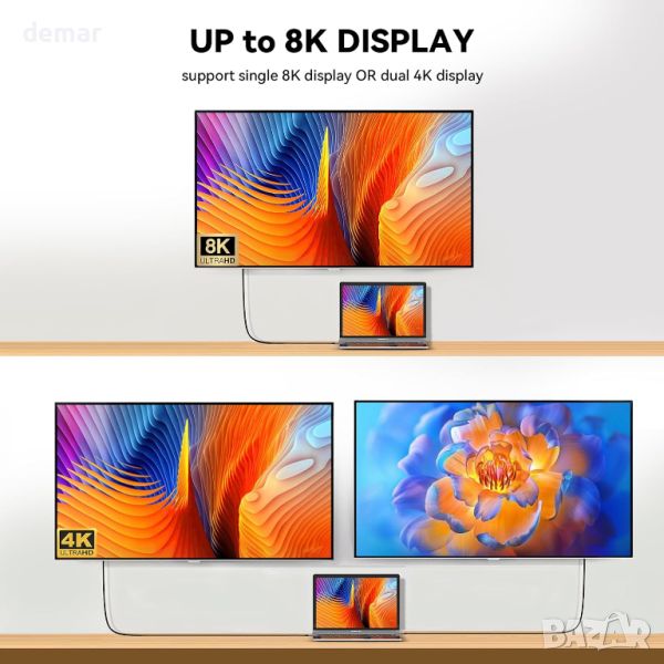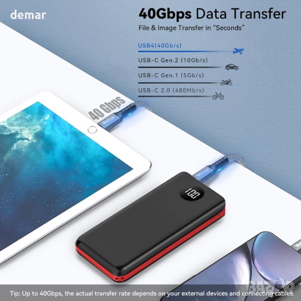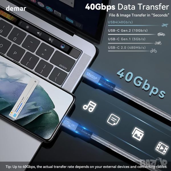 Високоскоростен USB4 кабел, предлагащ невероятна скорост на трансфер от 40 Gbps, 8 пъти по-бърз от USB 3.0, осигуряващ бърз трансфер на файлове без забавяне. Със здрав капацитет за доставяне на мощност от 240 W, този USB C към USB C кабел поддържа бързо зареждане за различни устройства, от лаптопи до смартфони. Наслаждавайте се с лекота на зашеметяваща 8K резолюция или двойни 4K дисплеи, идеални за работа, игри или забавление. Изработен от издръжлива найлонова оплетка, този кабел издържа над 20 000 огъвания за дълготрайна гъвкавост. Съвместим с широк набор от устройства Type-C, включително Thunderbolt 4/3, USB 3.2 Gen 2 и други, този кабел е вашето най-добро решение за скорост, съвместимост и ефективност.