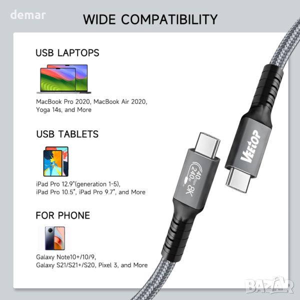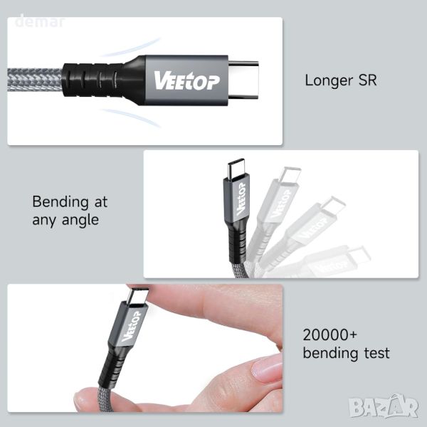 Veetop USB 4 кабел 1 м, 240 W USB C към USB C кабел, Thunderbolt 4 кабел 40 Gbps, с 8K видео