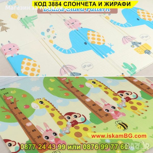 Топлоизолиращо килимче за игра - модел Слончета и Жирафи - КОД 3884 СЛОНЧЕТА И ЖИРАФИ