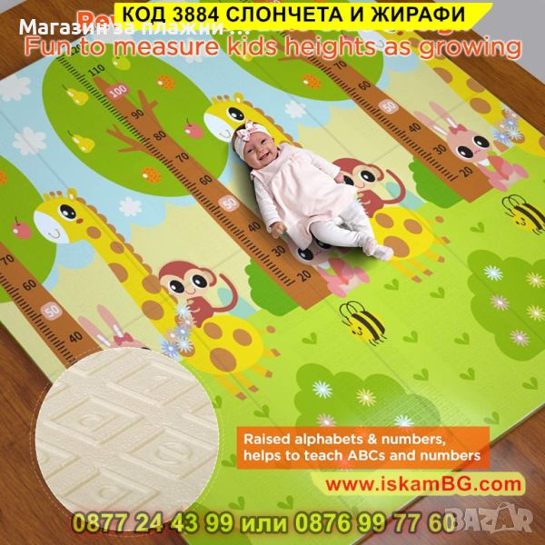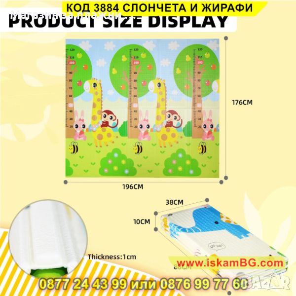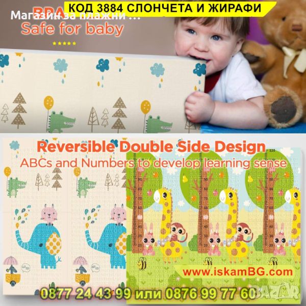 Това детско килимче за игра са идеални за бебета, които се учат да пълзят, малки деца и бебета. Всяко килимче е голямо и леко, което позволява лесното му транспортиране или съхранение, когато не се използва. Изработено с водоотблъскваща повърхност, това килимче и лесно се забърсват и почистват в случай на злополука. Топлоизолационното килимче се предлага с двустранен анимационен дизайн, така че вие и вашето бебе никога няма да скучаете!