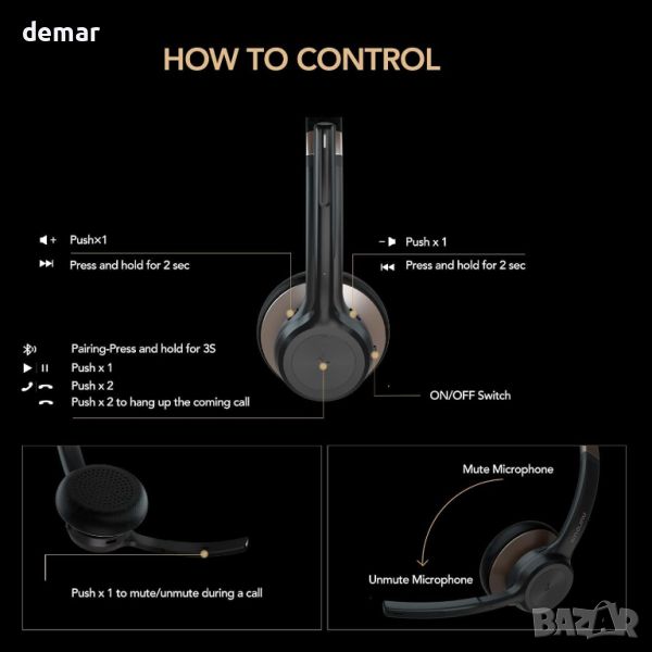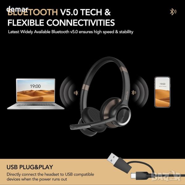 Безжични слушалки Nuroum HP30, отличаващи се със стилен дизайн и подплатена лента за глава за комфорт. Снабдени с 2 вградени микрофона за потискане на шума от околната среда, тези слушалки разполагат с водещо в индустрията потискане на шума, блокирайки до 99,9% от околния шум за кристално чисто стерео аудио. Контролирайте силата на звука и управлявайте повикванията без усилие с вградените бутони. Захранван от технологията Bluetooth 5.0, насладете се на стабилна връзка с разширен обхват и по-ниска консумация на батерия, което позволява свобода на движение до 20 метра от вашето устройство. С издръжлива батерия, осигуряваща до 15 часа време за разговори и 12 часа възпроизвеждане на музика, презаредете само за 2 часа. Свържете чрез Bluetooth, USB A или тип C към различни устройства, с Bluetooth многоточкова технология, позволяваща едновременно свързване към две устройства. Изпитайте комфорт през целия ден с лека конструкция, меки възглавнички за уши, регулируема лента за глава и въртящ се на 250° микрофон за персонализирано прилягане. Съвместим с водещи платформи за унифицирани комуникации и множество операционни системи, Nuroum HP30 е идеален за работа, разговори, онлайн курсове, конференции и други, предлагайки безпроблемно сътрудничество между устройства.