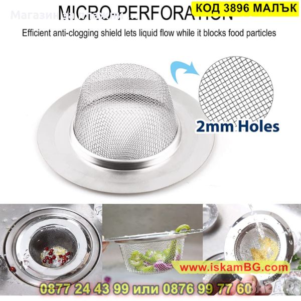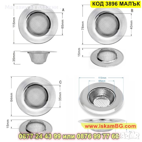 Цедка филтър от неръждаема стомана Ф 6.4см - КОД 3896 МАЛЪК