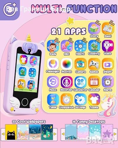 Интерактивен учебен телефон: С екран, камери и музикален плеър, идеален за игра и обучение.